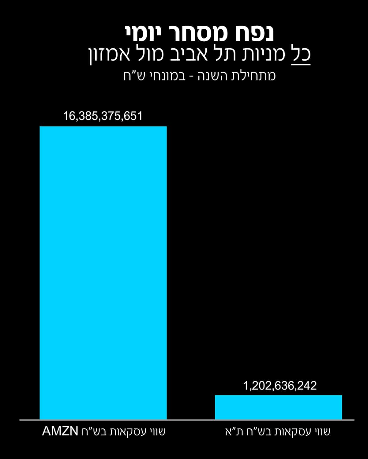 ועכשיו תתכוננו, תנשמו עמוק, ותראו את ההבדל בין מחזור המסחר הממוצע בכל המניות בבורסת תל אביב, אל מול מנייה אמריקאית סחירה אחת,